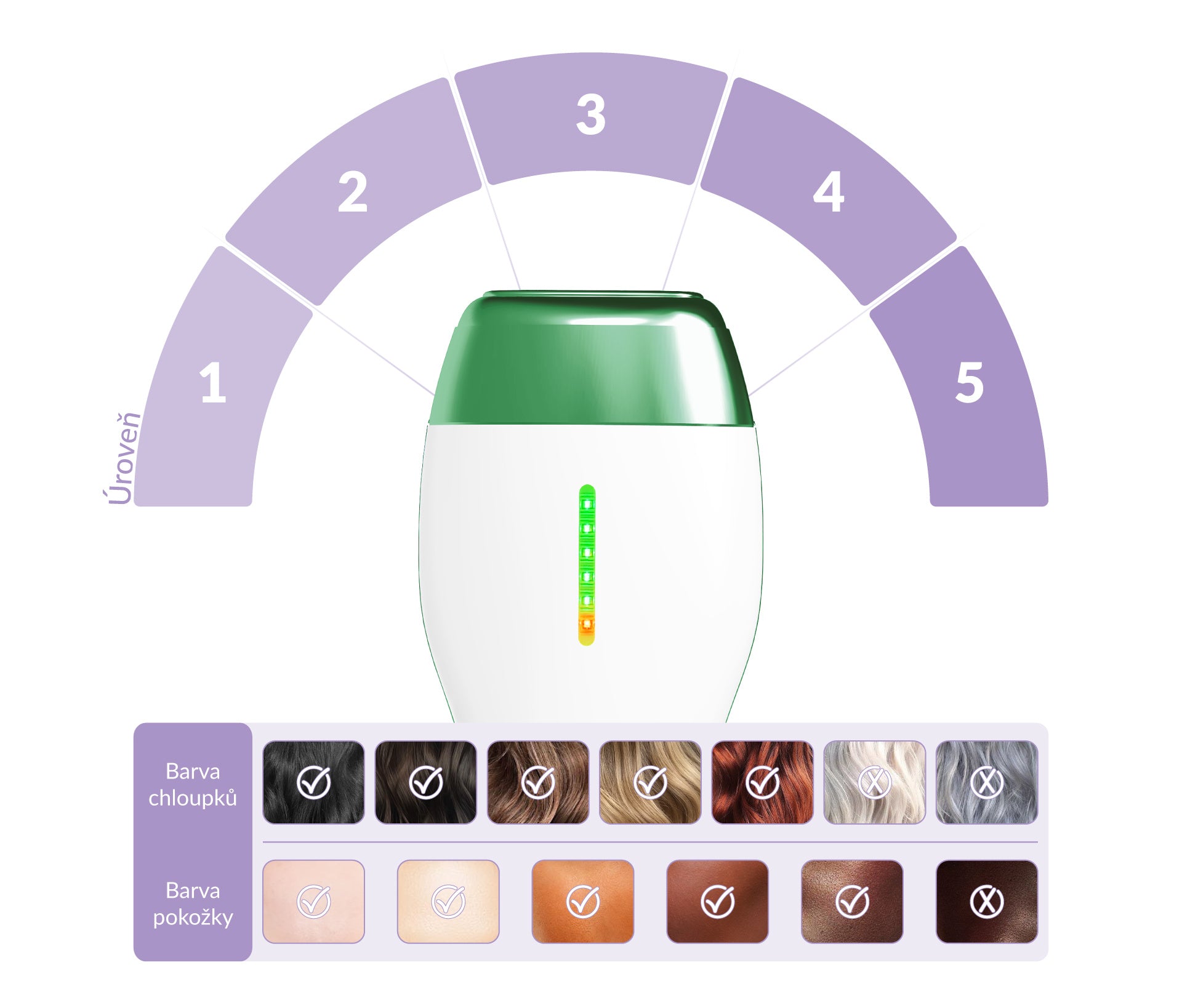 K určení, zda je pro vás epilátor IPL vhodný, použijte Fitzpatrickovu stupnici, která rozlišuje 6 stupňů barvy pleti.