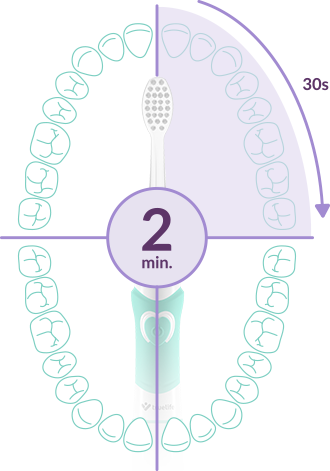 - Rozdělení na části: rozdělte úklid na 4 části a každé části věnujte 30 sekund. Po 30 sekundách se kartáček krátce zastaví a upozorní vás, abyste přešli k další sekci.